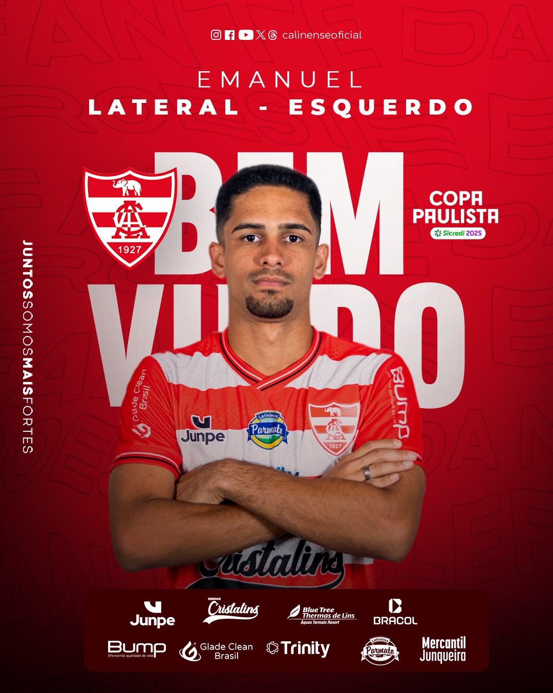 O Clube Atlético Linense tem o prazer de anunciar a contratação do lateral-esquerdo Emanuel, de 21 anos, para reforçar o elenco na temporada. Jovem e promissor, Emanuel chega ao Elefante com grande expectativa de contribuir com sua velocidade, técnica e dedicação em campo.